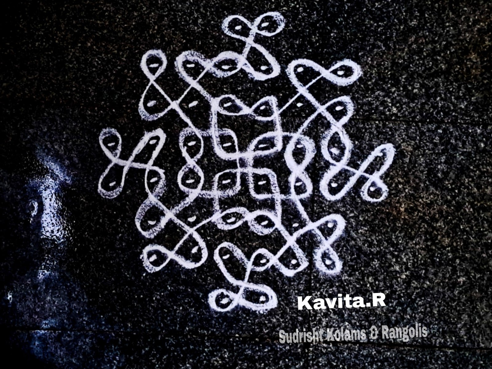 A 7-4 dots Sikkukolam with Brahmamudi single string.