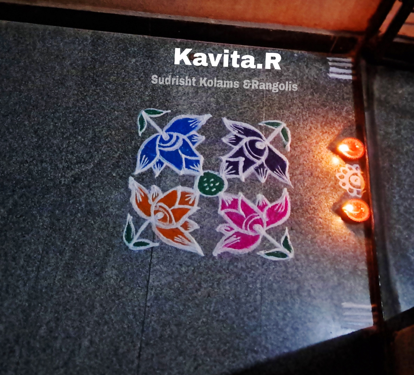 An openair rangoli drawn by me at one of the Samithi members place for Devi Mahatmeeyam chanting.